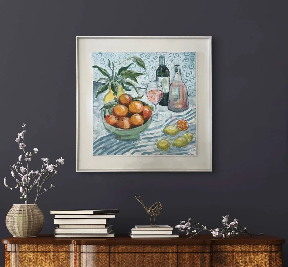 A fresh look at still life in slightly abstract form. I found this jug in an antique shop and really couldn’t afford it at the time, so I photographed it, knowing I would refer back to its beautiful elongated shape in some future painting. This is that painting!